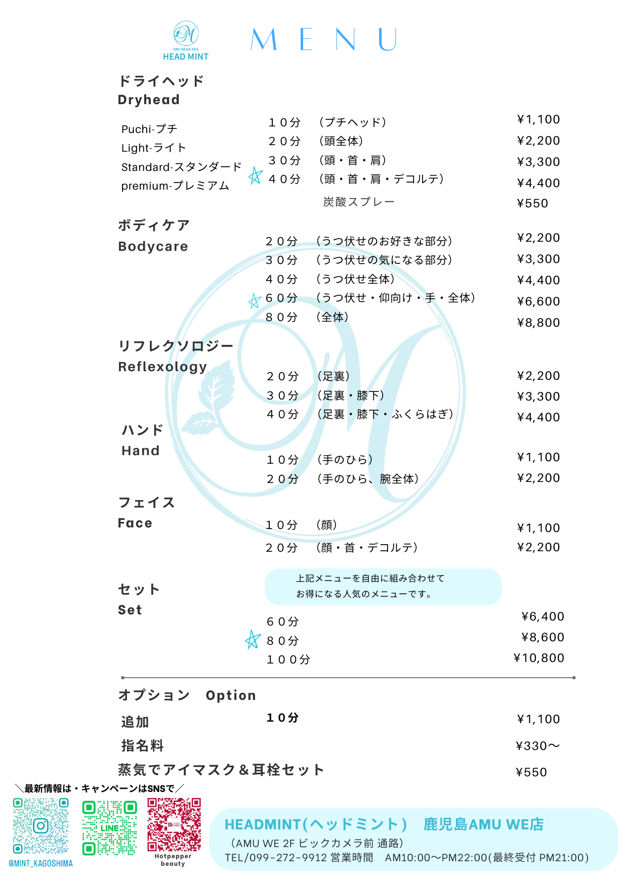 未分類 メニュー表 2023.06.29 この記事のタイトルとURLをコピーする 当店の基本メニュー表となります。 これにキャンペーン中のクーポンメニューはHPでありますので Hotpepperbeautyからご確認ください。 よろしくお願いいたします。